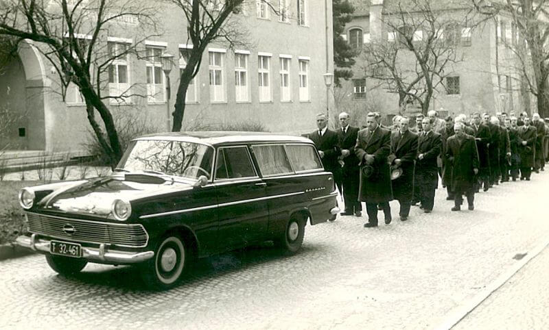 Aufwändige Trauerzüge, wie man sie hier sieht, sind natürlich sehr selten. Aber einen Kondukt (den Gang zum Grabe) gibt es auch bei den meisten „kleineren“ Bestattungsfeiern. Als Trauergäste drücken wir damit aus, dass wir den Verstorbenen auf seinem letzten Weg nicht alleine gehen lassen wollen.